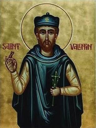 Décapité le 14 février 268 en représailles des conversions au christianisme qu’il suscita suite à la guérison d’une jeune fille aveugle, saint Valentin doit à son nom, qui signifie santé et vigueur, le fait que les fiancés, les jeunes gens à marier, ceux qui craignent les atteintes de la peste, les personnes, enfin, qui sont sujettes à l’épilepsie et aux évanouissements se sont placés sous son patronage.