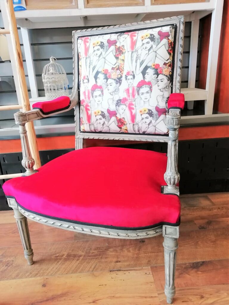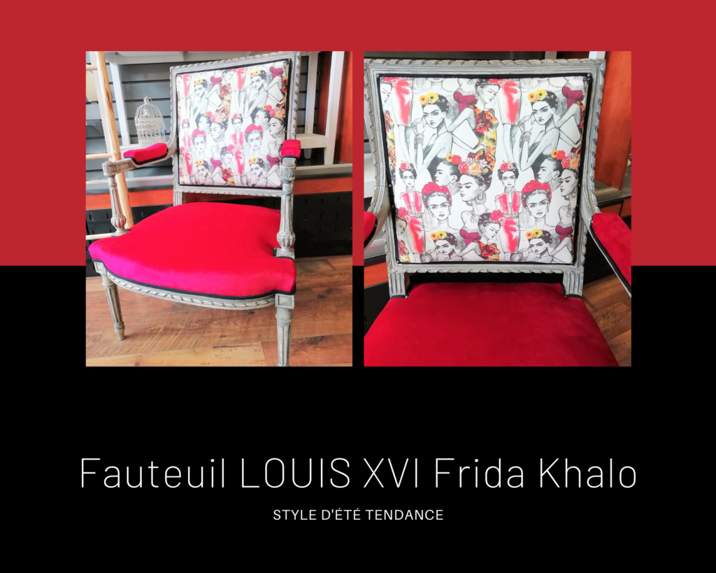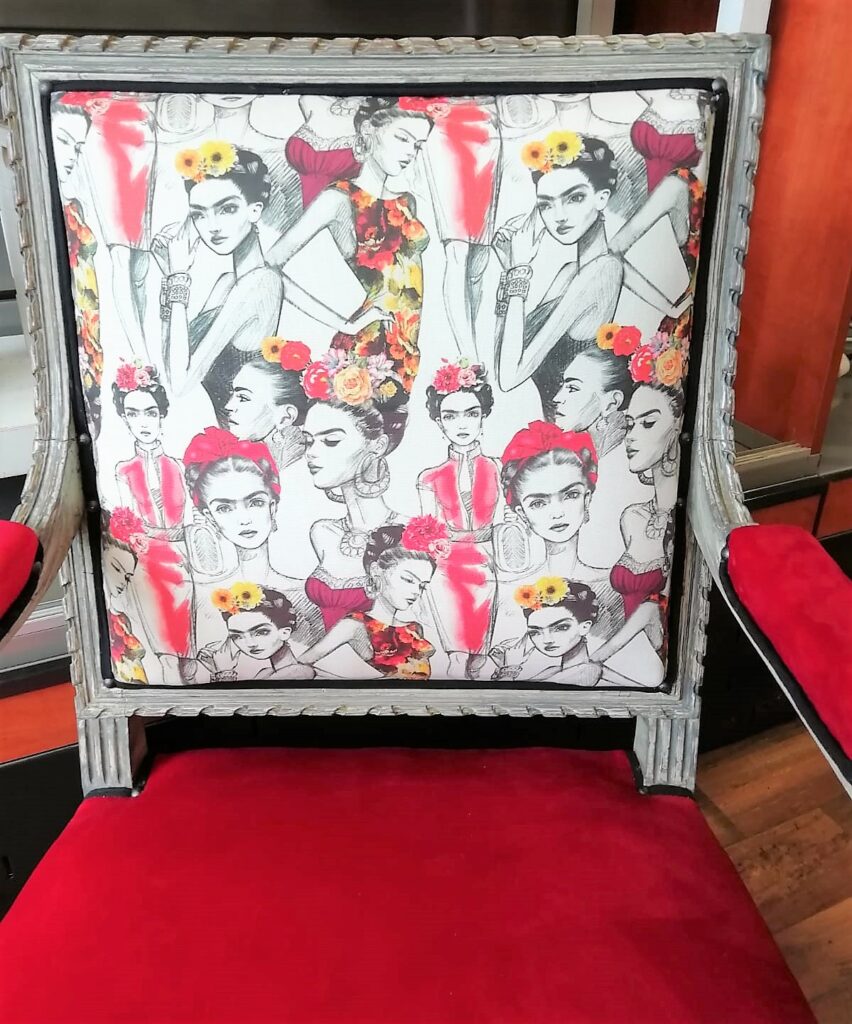 Tissu coton Frida Kahlo sur le dossier.