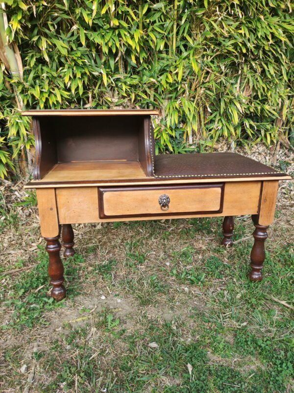 Ce fauteuil téléphone était utilisé autrefois pour y poser le téléphone ( jadis, avec un fil mais c’est un temps que les moins de 20 ans ne pouvent pas connaître).
